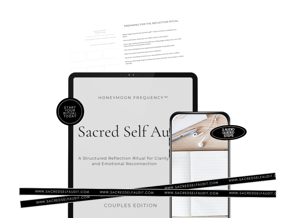 The Sacred Self Audit™ for Couples is a guided reflection ritual that helps you and your partner slow down, name what’s been left unsaid, and reconnect through deeper honesty, clarity, and understanding.